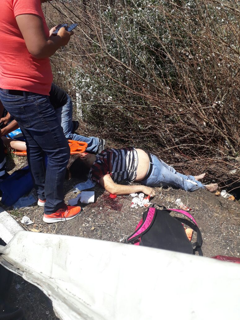 Los hechos se registraron alrededor de las 12:30horas sobre la citada vialidad con sentido hacia la ciudad poblana, donde una unidad de transporte público de la empresa Colectivos que cubría la ruta Tlaxcala-Ixtacuixtla impacto el muro de contension a exceso de velocidad provocando se volcara fuera de la vía hacia un bordo de tierra donde finalmente quedó boca arriba.