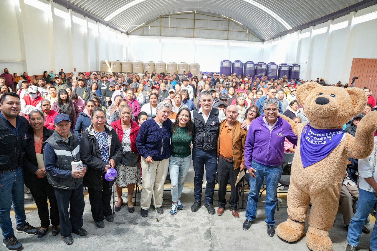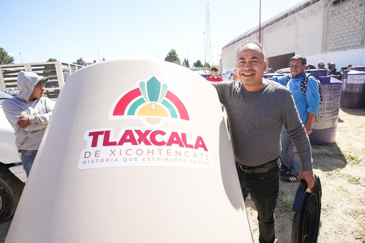 En un esfuerzo conjunto entre el Ayuntamiento de Tlaxcala y el Gobierno del Estado, el presidente municipal Alfonso Sánchez García y la presidenta honorífica del Comité Consultivo de Bienestar y Desarrollo Social del estado, Fernanda Espinosa de los Monteros Cuéllar, encabezaron en San Hipólito Chimalpa la entrega de 300 tinacos a familias en situación vulnerable del municipio, a través de la estrategia Juntos por el Bienestar de Todos.