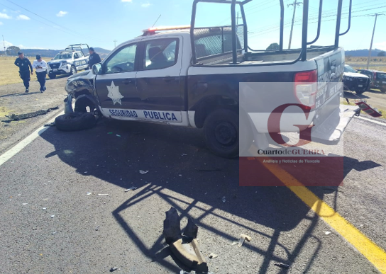(Alexis P. González) Un fuerte accidente vial se registró este mediodía en la entrada al municipio de Nanacamilpa de Mariano Arista, donde una patrulla de la Policía Municipal de Calpulalpan y una camioneta particular colisionaron, dejando como saldo cuatro personas heridas.