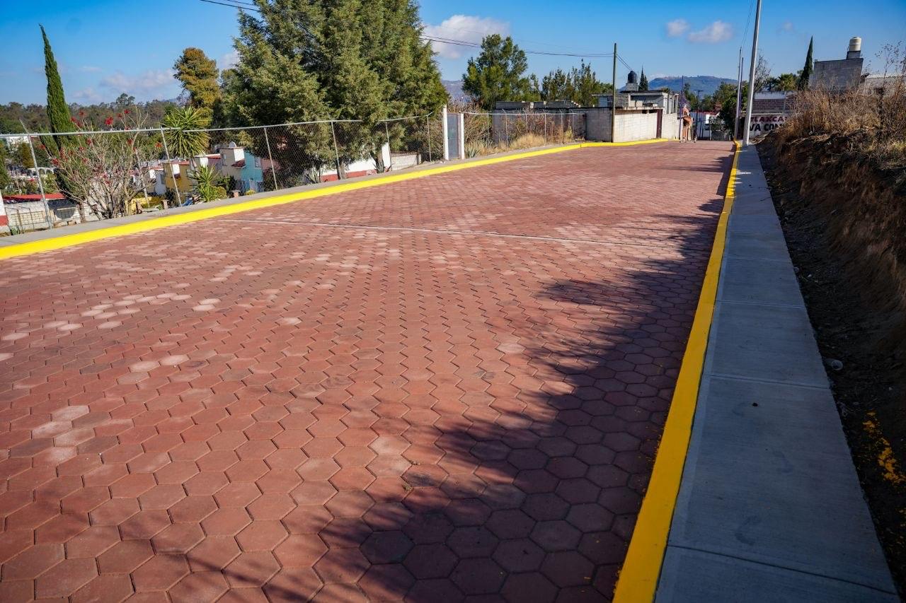 La obra contempla la construcción integral de la vialidad con 300 metros lineales de adoquín y drenaje, la instalación de 23 luminarias, así como la colocación de pintura en 600 metros lineales de guarniciones, también se colocaron 720 metros cuadrados de banquetas.