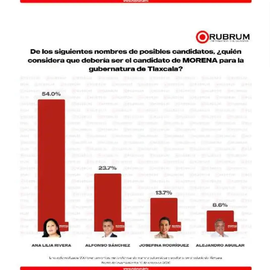 (Ana Rojano) A poco más de un año de las elecciones estatales de 2027, las tendencias electorales muestran una clara preferencia ciudadana hacia el partido en el poder. Según la más reciente encuesta publicada por RUBRUM este 20 de enero de 2026, MORENA lidera las preferencias rumbo a la gubernatura de Tlaxcala, consolidando su posición como la fuerza política con mayor respaldo en el estado.
