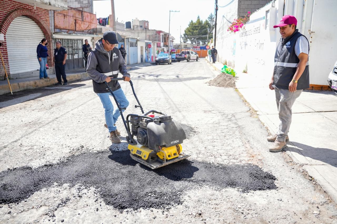Posteriormente, el edil se trasladó a la privada de la Secundaria General “Gabino A. Palma”, donde se llevaron a cabo trabajos de bacheo con el objetivo de mejorar la circulación vehicular y peatonal, beneficiando directamente a docentes, madres y padres de familia, estudiantes y habitantes de la zona, además de reducir riesgos viales.