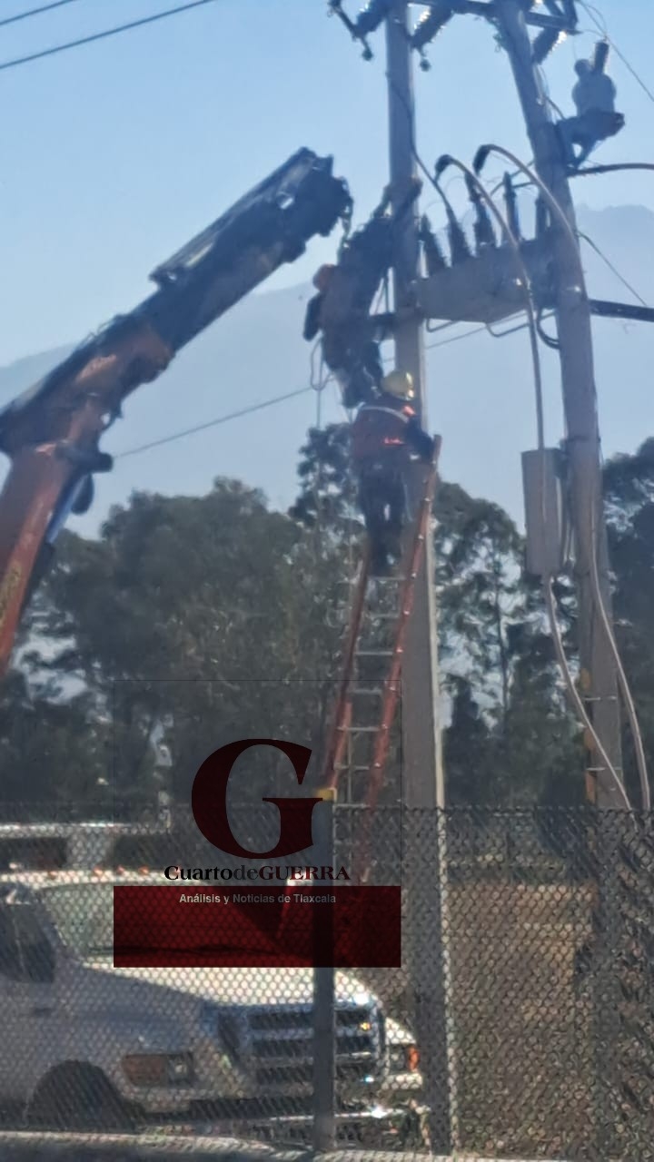 Rescatan con grúa a trabajador herido en mantenimiento eléctrico y lo trasladan sin auxilio médico, en Tlaxcala