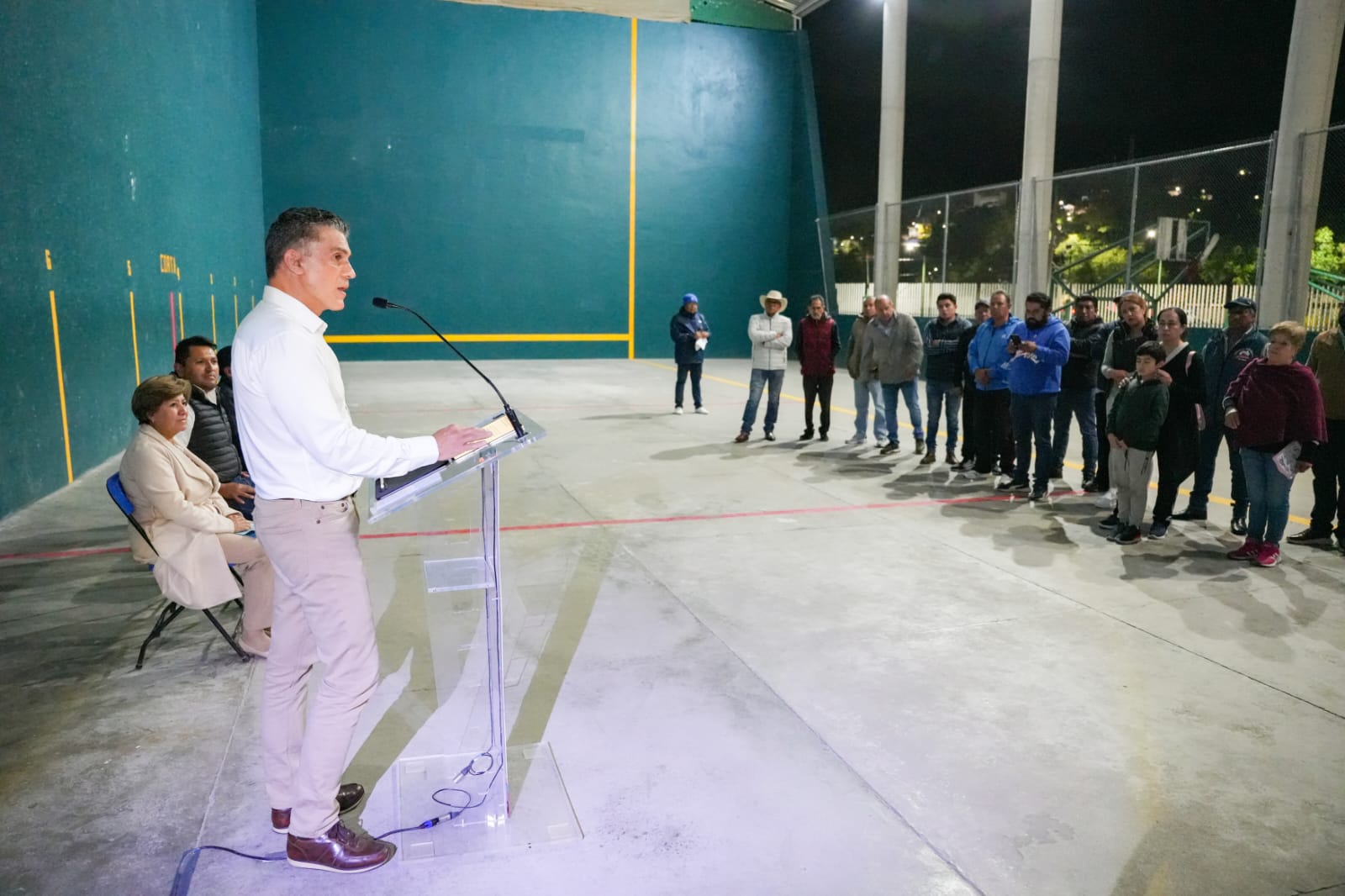 * El alcalde de la capital inauguró la rehabilitación de la cancha de frontón en la Colonia Adolfo López Mateos.