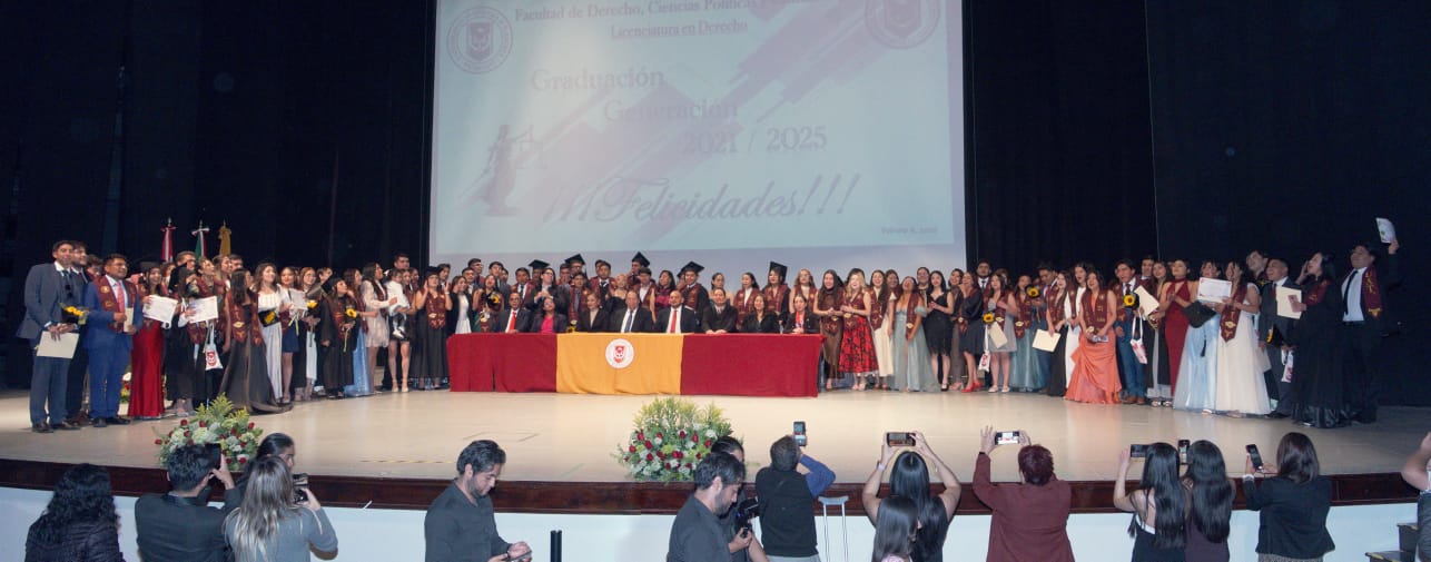 La Facultad de Derecho, Ciencias Políticas y Criminología de la Universidad Autónoma de Tlaxcala (FDCP-UATx) llevó a cabo la ceremonia de graduación de 284 egresados de la Licenciatura en Derecho de las terminales en Seguridad Social, Seguridad entre Particulares y Seguridad Pública, generación 2021-2025, en el Centro Cultural Universitario.