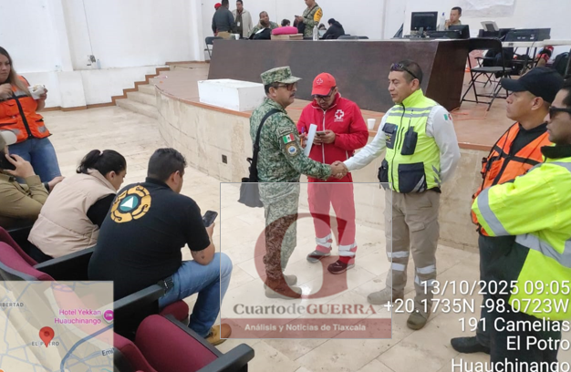 Desde el Puesto de Comando instalado en Huauchinango, los brigadistas tlaxcaltecas se integraron a la logística junto a elementos del Ejército Mexicano, la Guardia Nacional y autoridades locales y estatales.