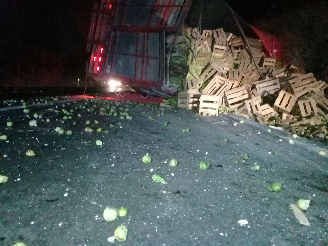 Efectivos de distintas corporaciones atendieron la noche del lunes, el incidente de tránsito ocurrido en la carretera Apizaco-Tlaxcala a la altura de Tizatlán, donde un camión torton cargado con tomates fue abandonado tras perder la carretera e impactar contra el talud de tierra y regar el producto.