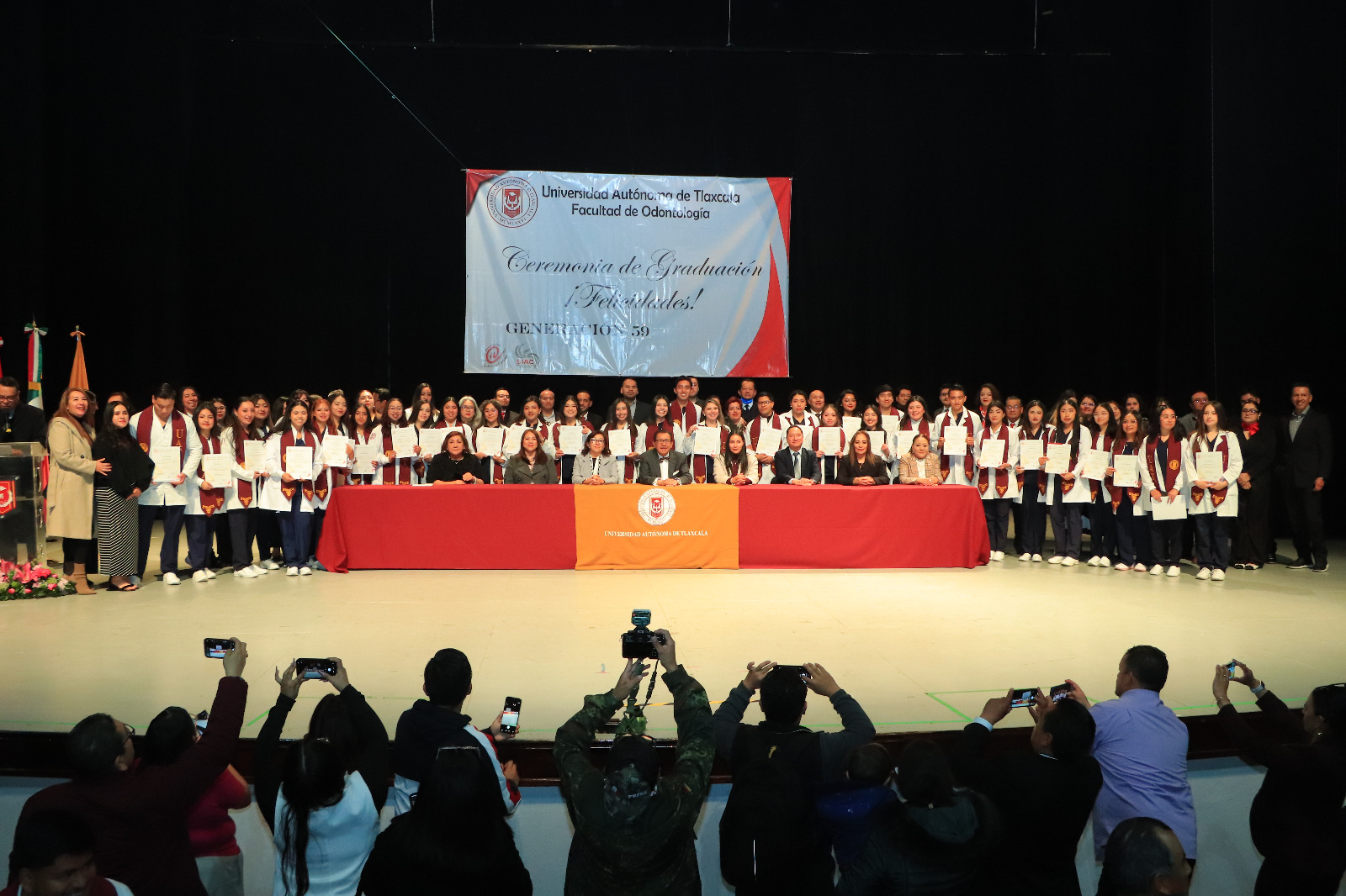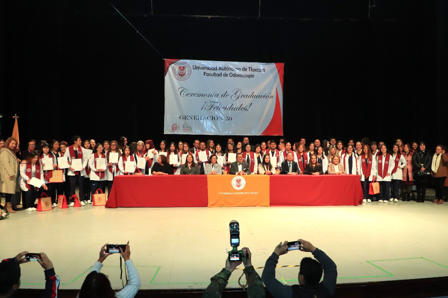 En tanto, el estudiante Diego Sarmiento Hernández, en representación de los 115 graduados, dijo que en la UATx aprendieron que la odontología se ejerce con conocimientos, ética, compromiso, responsabilidad y humanidad, porque cada paciente es una historia y cada tratamiento significa confianza y sus manos están llamadas a servir, por ello, agradeció a los docentes por haber compartido con ellos su experticia, su conocimiento y el amor y compromiso con su profesión, considerando que el verdadero aprendizaje no concluye en el aula sino es un proceso a lo largo de toda la vida.