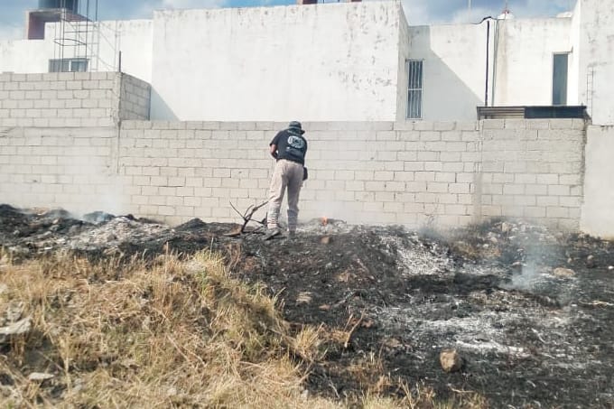 Elementos de la Coordinación Municipal de Protección Civil de Tlaxcala sofocaron un incendio de pastizal registrado en la comunidad de San Sebastián Atlahapa, a un costado de un centro comercial.