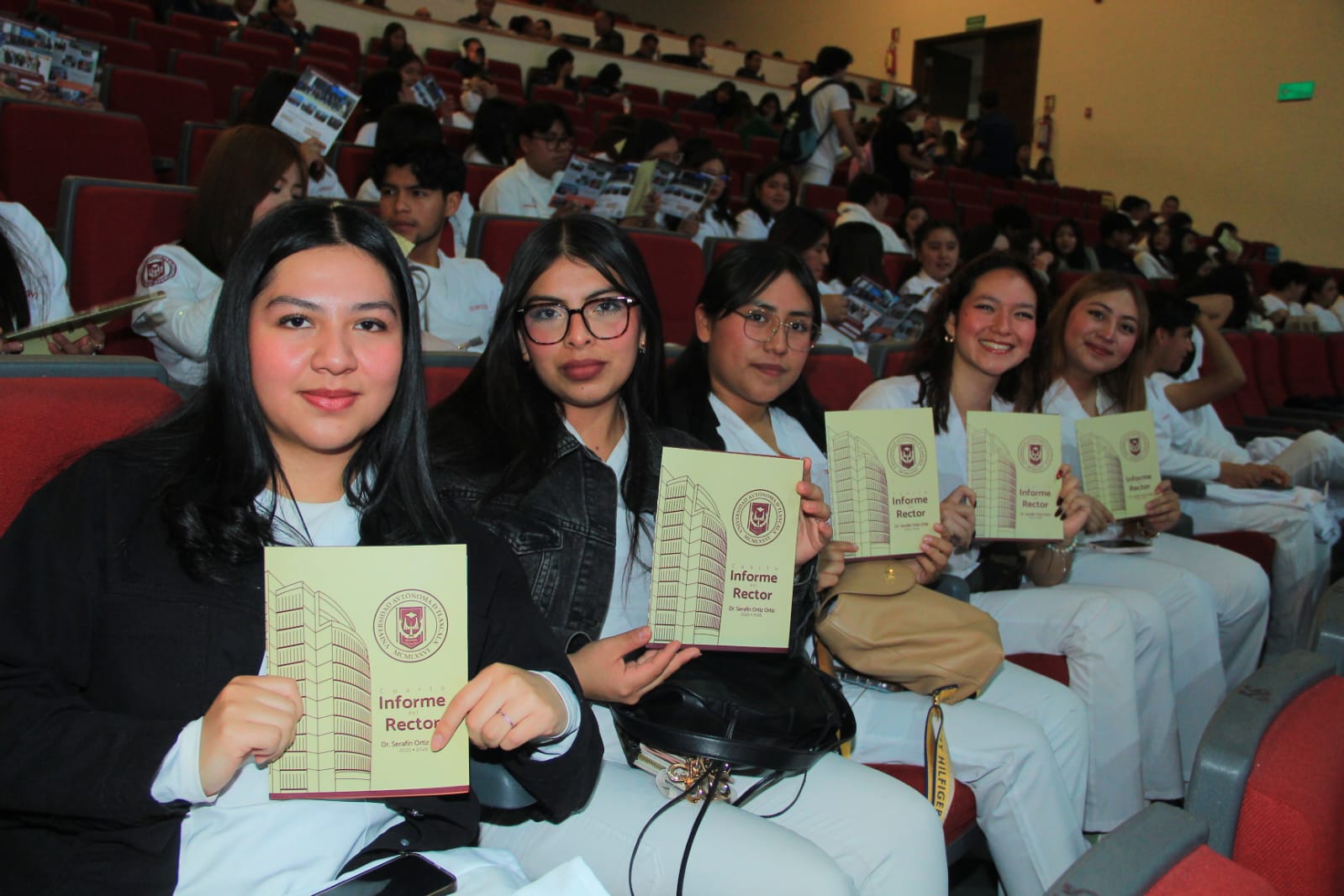 Concurrieron a este Informe, los exrectores Contador Público Héctor Vázquez Galicia, Ingeniero Alfredo Vázquez Galicia, Maestro Eugenio Romero Melgarejo, Químico René Grada Yautentzi, Doctor Víctor Job Paredes Cuahquentzi y Doctor Luis Armando González Placencia, Secretario General Ejecutivo de la Asociación Nacional de Universidades e Instituciones de Educación Superior (ANUIES). También, Maestro Ismael Carballo Robledo, Director del Instituto Latinoamericano de la Comunicación Educativa; Doctor Octavio Castillo Acosta, Rector de la Universidad Autónoma del Estado de Hidalgo; y presentantes de instituciones de educación superior de la Región Centro-Sur de ANUIES.