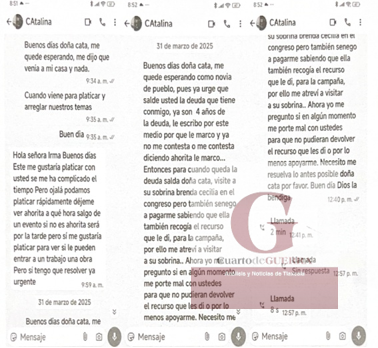 La denunciante sostiene que, después de la toma de protesta de Villantes Rodríguez como diputada, la comunicación se interrumpió y dejaron de responderle llamadas y mensajes. Añade que la diputada le señaló posteriormente que “viera el tema con su tía”.
