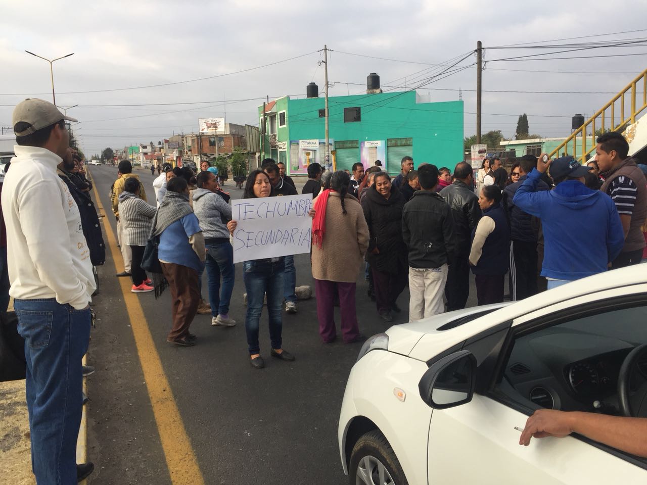 Esta mañana, padres de familia de la Escuela Secundaria José Joaquín Fernández de Lizardi, de La Magdalena Tlaltelulco, bloquearon la vía corta Chiautempan-Puebla a unos 200 metros de Porcelanite.