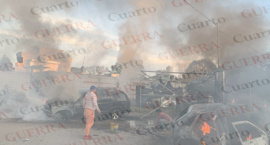 Incendio en deshuesadero de Tenancingo consume varuis vehículos