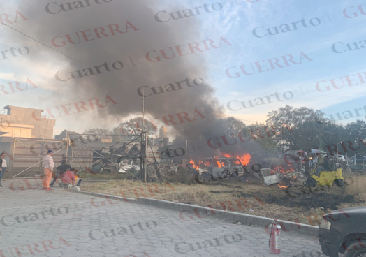 (Alexis P. González) Un fuerte incendio registrado la tarde de este viernes 23 de enero en un depósito de autopartes, conocido comúnmente como yunque, movilizó a los cuerpos de emergencia en el municipio de Tenancingo. Fueron varios vehículos siniestrados y cuantiosas pérdidas materiales.