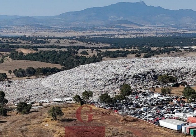 Vista aérea del relleno sanitario de Atlangatepec tras la saturación de residuos