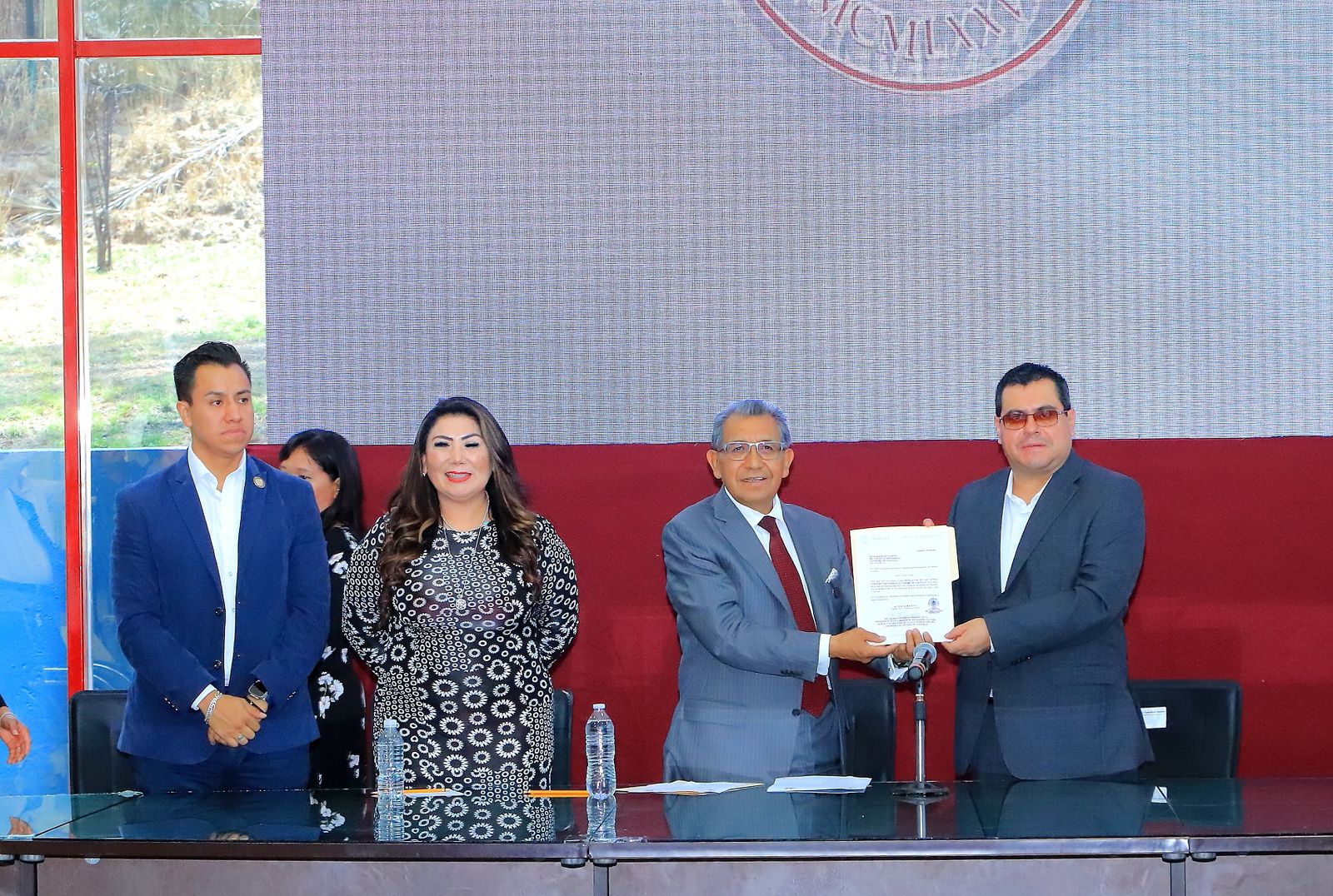 Como parte del proceso de inscripción con letras doradas del nombre de la Universidad Autónoma de Tlaxcala (UATx) en el muro de honor de la sala de sesiones del Congreso del Estado, el Doctor el Doctor Serafín Ortiz Ortiz, Rector de la máxima Casa de Estudios, recibió a los diputados Jorge Caballero Román, Presidente de la Junta de Coordinación y Concertación Política; Maestra Alejandra Ramírez Ortiz, Presidenta la Comisión de Educación, Cultura, Ciencia y Tecnología; y al vocal de dicha comisión, Ramiro Lima Tecocoatzi, en las instalaciones de la Infoteca Central.