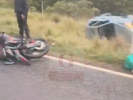 El fatal accidente ocurrió la tarde de este domingo 26 de abril, alrededor de las 17:00 horas, a la altura del kilómetro 34+600 de la carretera Chignahuapan-Tlaxco, en la comunidad de Teopan. En ese punto, la motocicleta Vento 220 CC, color gris con rojo, en la que viajaban Brandon N., de 37 años, y su esposa Regina N., fue impactada por un Dodge Attitude azul, conducido por un docente identificado como Federico N., de 43 años.