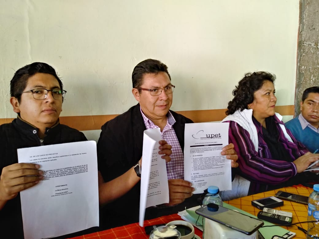 La asamblea del 14 de diciembre en lugar por definir iniciará a las 10:00 horas, los votos serán recibidos, escrutados y computados por el personal que envié el ITE y una vez que tengan los resultados, estos se darán a conocer en un cartel, para que sea al siguiente día 15 que se haga la declaración de validez de la elección y se entregará la constancia de mayoría a la planilla ganadora.