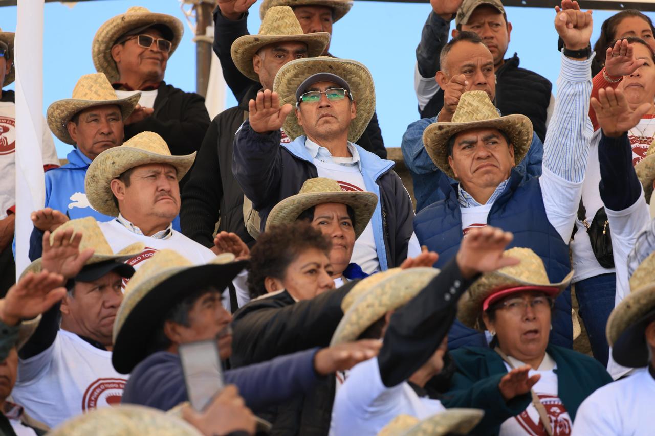 “Hoy estamos en un acto de reconocimiento y agradecimiento a la labor de todos ustedes para honrar con orgullo la representación de los comisariados ejidales y darles voz a las demandas del pueblo campesino, porque con el pueblo todo y sin el pueblo nada”, afirmó.