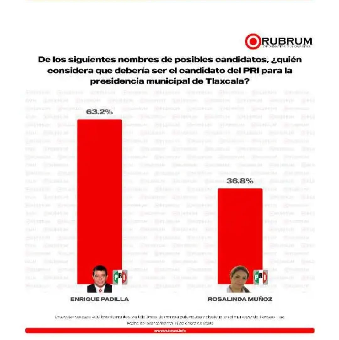 De los posibles nombres planteados en el caso del PRI, Enrique Padilla obtuvo el 63.2 % de preferencias; y 36.8 % fue para Rosalinda Muñoz.