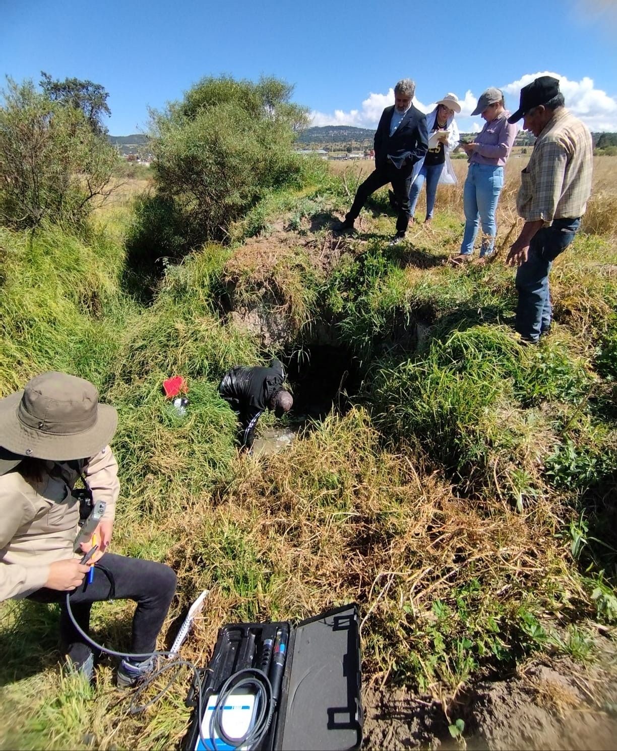 Por tal motivo, el 17 de octubre realizaron un muestreo para conocer la calidad del agua de los canales de escurrimiento que drenan hacia la 𝗣𝗿𝗲𝘀𝗮 𝗘𝗹 𝗠𝘂𝗲𝗿𝘁𝗼 en el municipio de Tlaxco, con el fin de fundamentar estrategias de saneamiento, contando con la intervención de estudiantes y académicos de la Maestría en Ciencias en Gestión Integral de Cuencas Hidrográficas en colaboración con la Coordinadora de Ecología del municipio de Tlaxco, Ing. María Concepción Espinosa González; la comisariada ejidal de Lagunilla, Eréndira González García; y los presidentes de las comunidades de Buenavista, Valdemar Fuentes Hernández, y de Tepeyahualco, Onésimo Montiel Curiel.