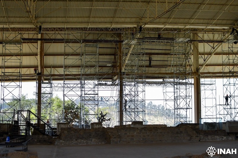 Luego de cuatro meses de labores, la Secretaría de Cultura del Gobierno de México, a través del Instituto Nacional de Antropología e Historia (INAH) y del Centro INAH Tlaxcala, concluyó los trabajos de mantenimiento general de la cubierta del Gran Basamento de la Zona Arqueológica de Cacaxtla, la cual desde 2022 solo recibía labores correctivas puntuales.