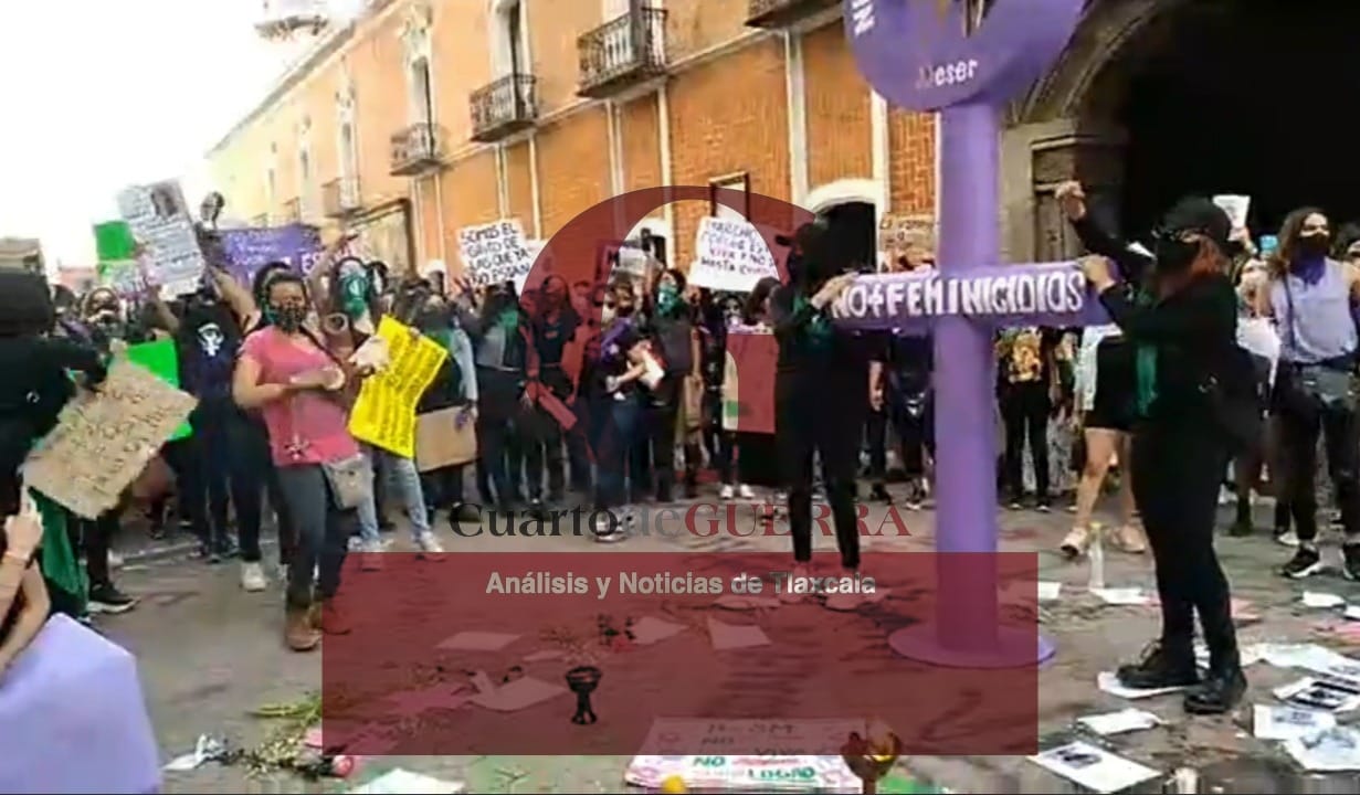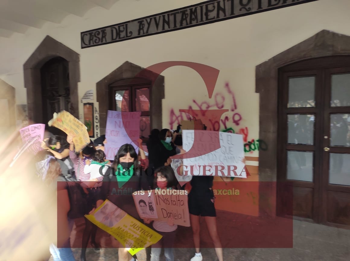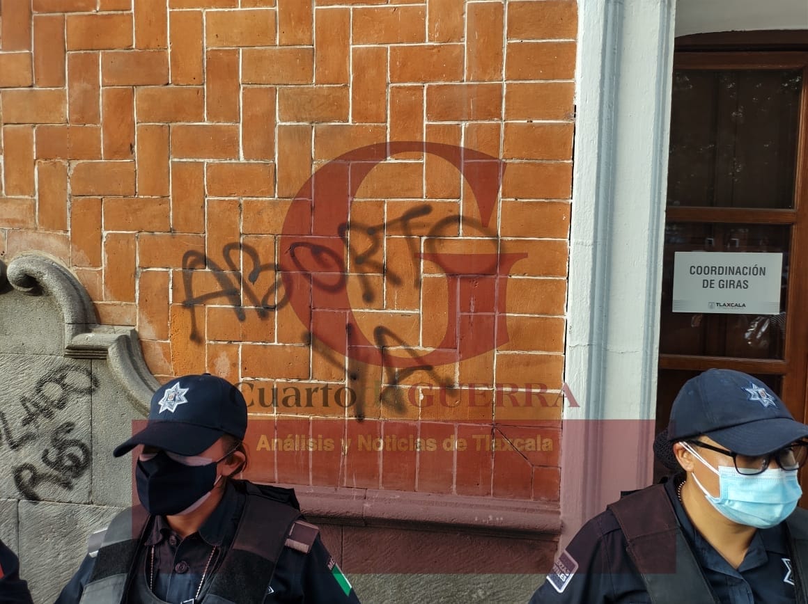 radicales, vandalizaron contra el inmueble del palacio municipal de Tlaxcala y,