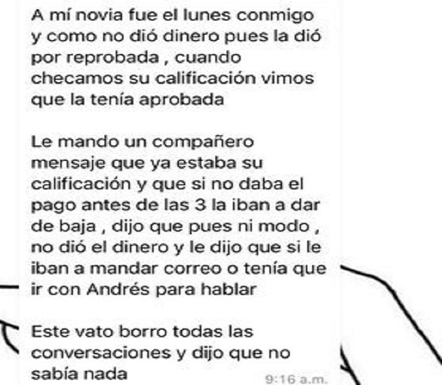 De acuerdo con esta denuncia, algunos maestros allegados al coordinador se han dedicado a pedir “algo” a cambio de que los alumnos pasen la materia.