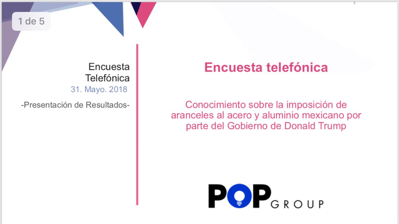 Así lo revela un estudio de opinión de la consultora Pop Group, el cual señala que 44% de los mexicanos dijeron haberse enterado o escuchado que el presidente Donald Trump decidió cobrar un impuesto al acero y aluminio que México le vende a Estados Unidos, mientras que 56% respondió no estar enterado de la noticia.