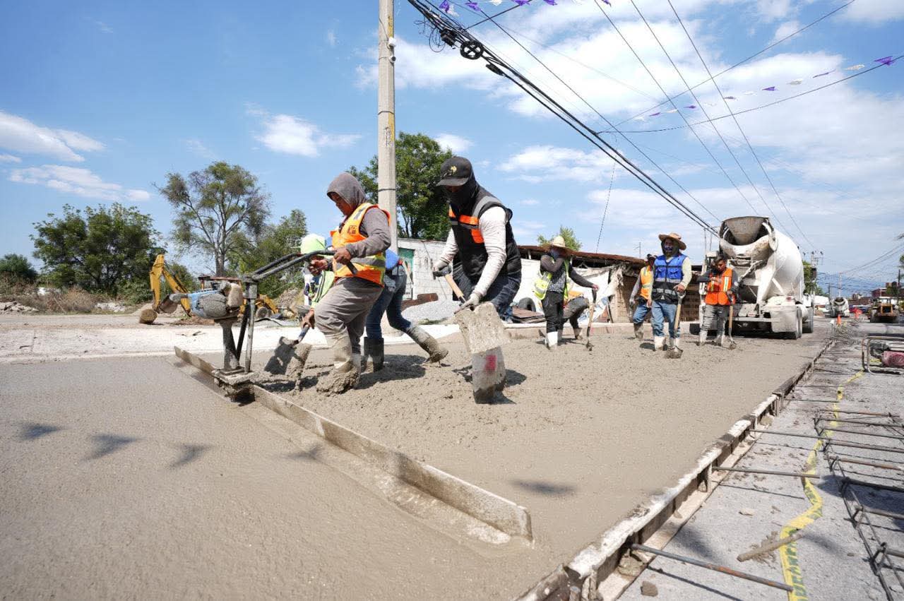 Cabe destacar que la obra contempla la colocación aproximada de 380 metros lineales de pavimento de concreto hidráulico, así como la sustitución de 380 metros lineales de guarniciones, banquetas y drenaje, acciones que beneficiarán a los habitantes de la zona, lo que mejora la seguridad, accesibilidad y calidad de vida en una de las calles más importantes de la localidad.