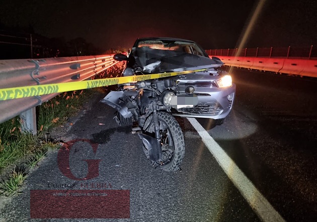 El accidente sucedió a la altura de Tepehitec, Tlaxcala, con rumbo al Trébol, donde un vehículo Kia impactó a una motocicleta en la que viajaba una pareja.