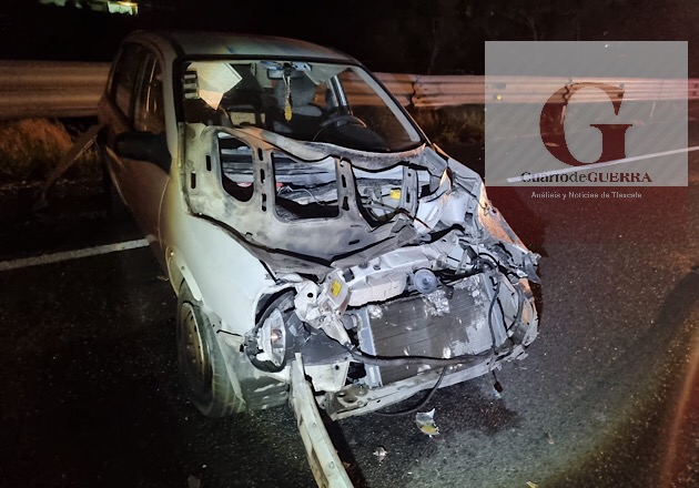 Cabe señalar que, metros atrás, un Chevy se accidentó, dejando únicamente daños materiales por cuantificar, haciéndose presentes paramédicos de Totolac y Panotla.