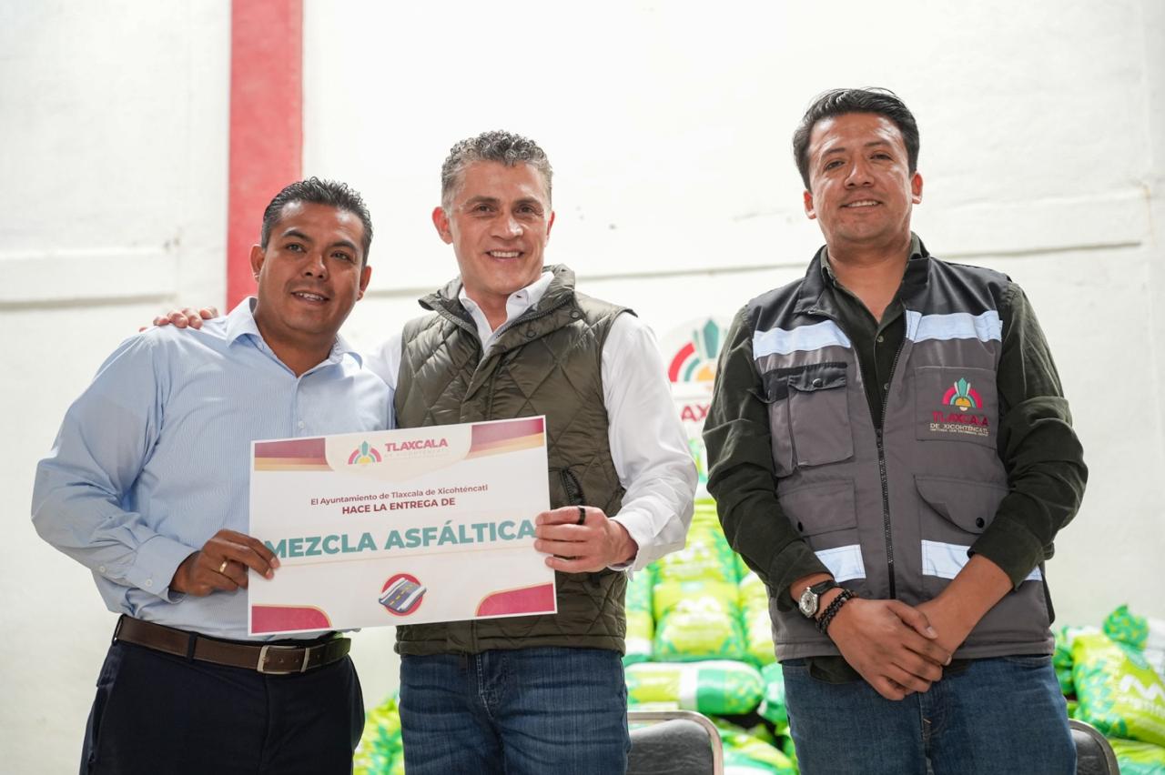 El presidente municipal de Tlaxcala, Alfonso Sánchez García, realizó la primera entrega de 50 toneladas de mezcla asfáltica en frío destinada a reforzar los trabajos de bacheo en 11 comunidades, delegaciones y la zona centro de la capital.