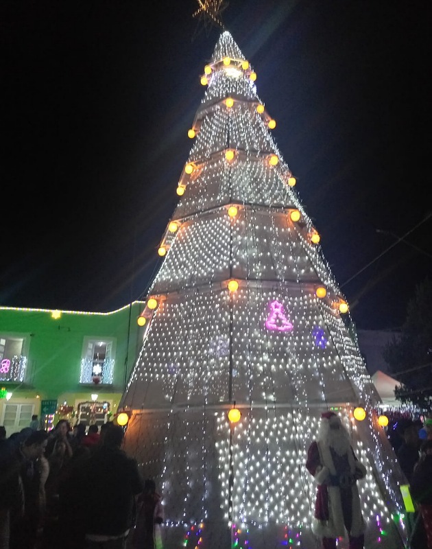 El árbol navideño de San Pedro Tlalcuapan está instalado en el zócalo,