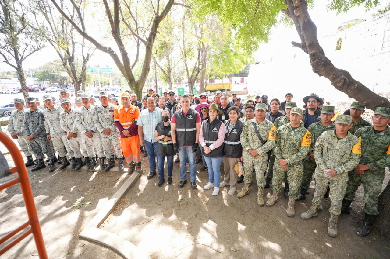 Durante la jornada, el alcalde lideró las brigadas del Ayuntamiento, que también contaron con la participación de elementos de la Guardia Nacional y de la Secretaría de la Defensa Nacional. Juntos emprendieron acciones encaminadas a recuperar un parque que durante años permaneció en el abandono y que hoy vuelve a ser funcional para el sano esparcimiento de las familias.