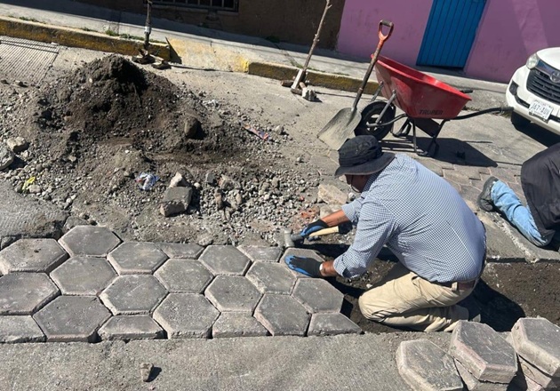nivelación de adocreto en la calle Victoria, acciones que contribuyen a