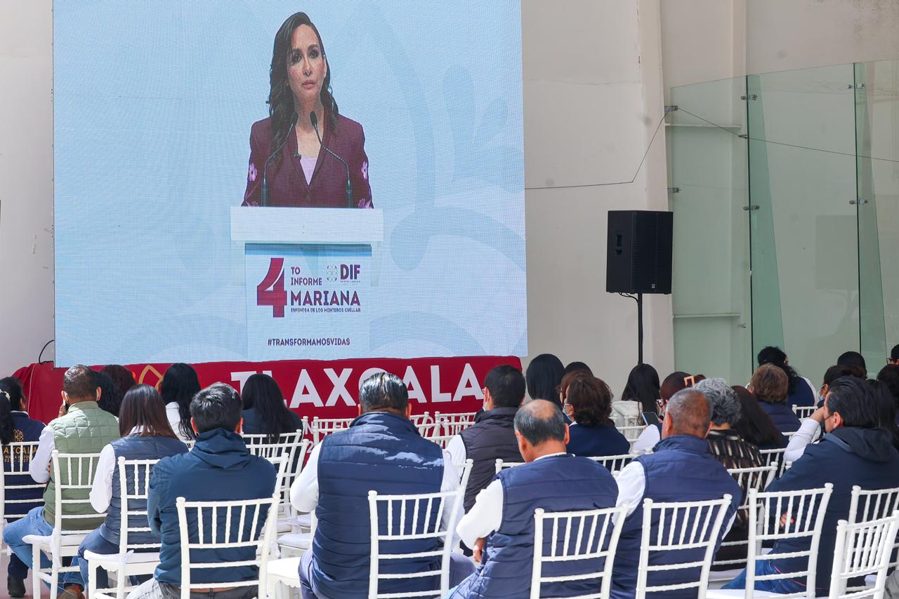 • En su Cuarto Informe de Actividades, la presidenta honorífica del Sistema Estatal DIF, Mariana Espinosa de los Monteros Cuéllar, presentó los resultados alcanzados en 2025, que beneficiaron de manera directa a más de 403 mil personas, a través de programas y acciones de alimentación, salud, rehabilitación, atención emocional y protección a la infancia.