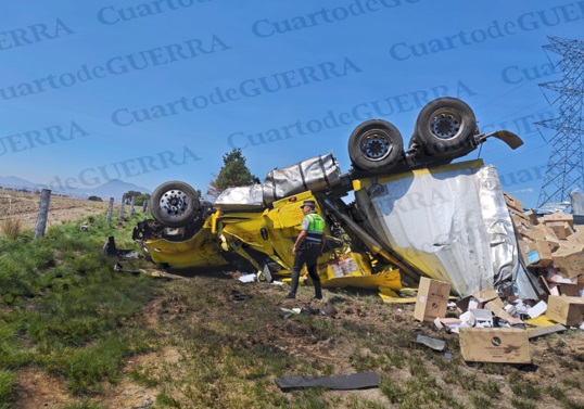 El percance ocurrió sobre la autopista Amozoc-Perote, a escasos 300 metros de la zona de San José Chiapa. En ese punto, una camioneta de tres y media toneladas cargada con botes de pintura se estrelló de frente contra un tráiler que transportaba cargamento de calzado. El impacto fue tan violento que la pesada unidad terminó volcada fuera de la cinta asfáltica, mientras que la camioneta de reparto quedó destrozada y recostada sobre su costado.