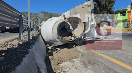 Caos en la Apizaco-Tlaxcala: Vuelca revolvedora de 20 toneladas en los límites de Tizatlán y Totolac