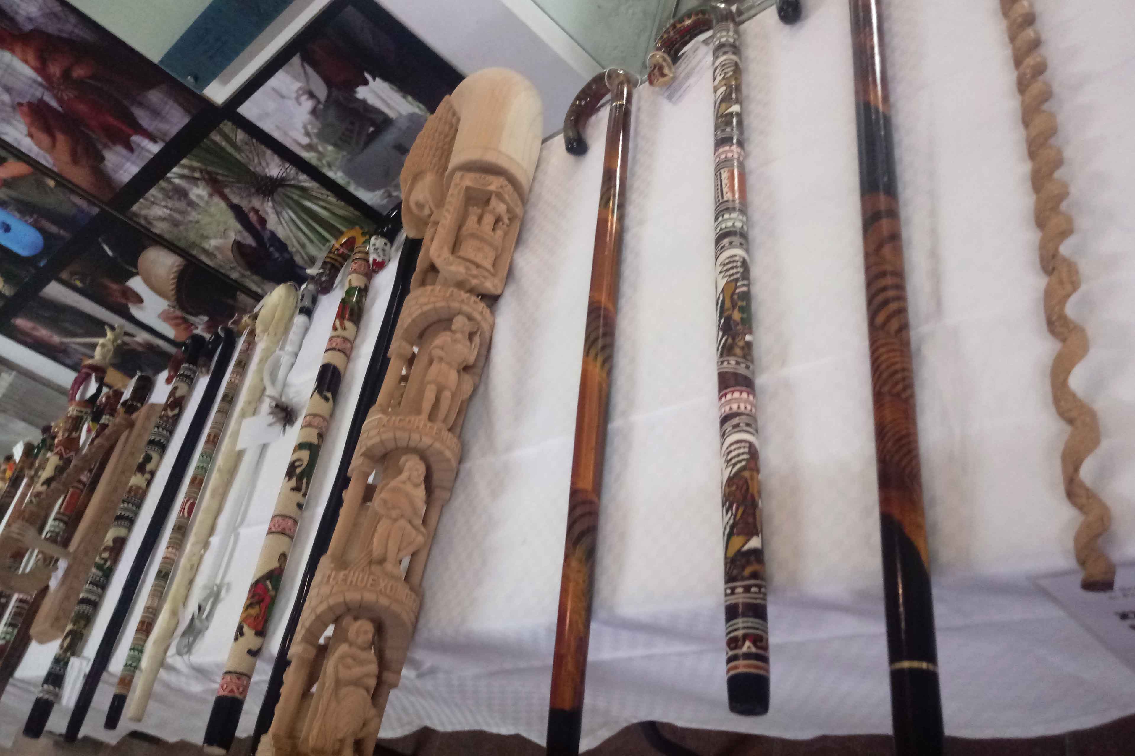 Sánchez Mastranzo explicó que en las “Fiestas de Sol 2018”, los artesanos tlaxcaltecas exponen piezas de madera tallada como bastones, ramas, trompos, porta plumas, llaveros y abrecartas, entre otros.