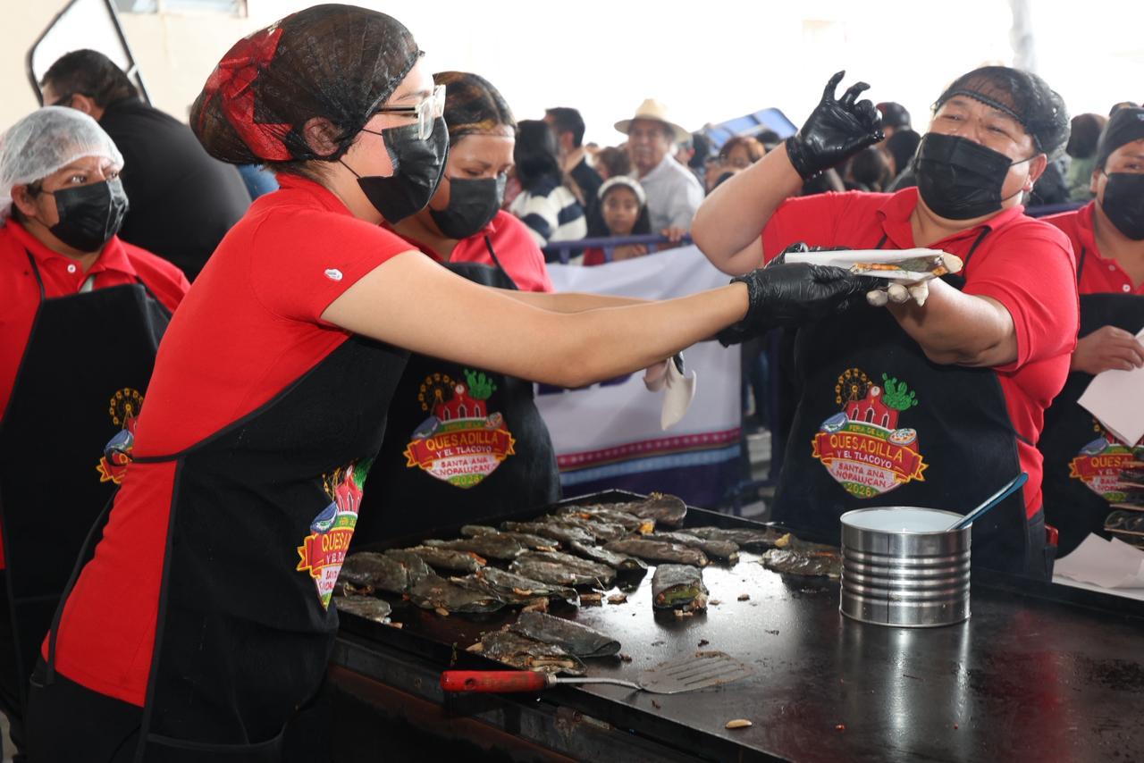 • Durante la Feria de la Quesadilla y el Tlacoyo 2026 en Santa Ana Nopalucan, se elaboraron 11 mil 206 quesadillas en una línea de 364.57 metros; la gobernadora Lorena Cuéllar destacó que Tlaxcala ha alcanzado ya cuatro títulos mundiales que proyectan su cultura, y reconoció la labor de cocineras tradicionales del municipio.