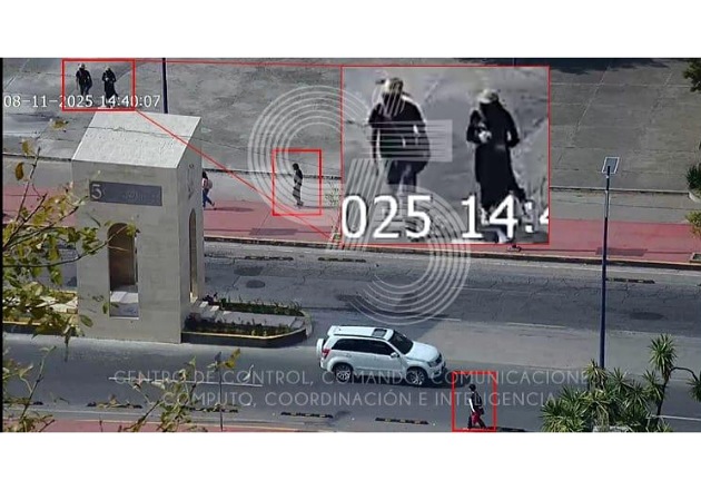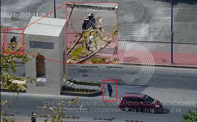 Mediante el monitoreo, las cámaras de videovigilancia captaron al menos a cinco jovenes con vestimenta oscura realizar pintas y colocar cartulinas con mensajes. Después, se refugiaron durante unos minutos en la Plaza Inn, frente al antiguo Asta Bandera, para después huir hacia distintos destinos.