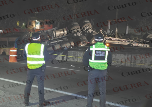 La pesada unidad terminó volcada sobre su costado derecho, provocando que el contenedor verde que remolcaba, de la marca "LOZANO", modelo 2007, se desprendiera y quedara proyectado metros más adelante. Por lo anterior, el operador quedó parcialmente aplastado por la cabina de la pesada unidad, perdiendo la vida de manera instantánea.