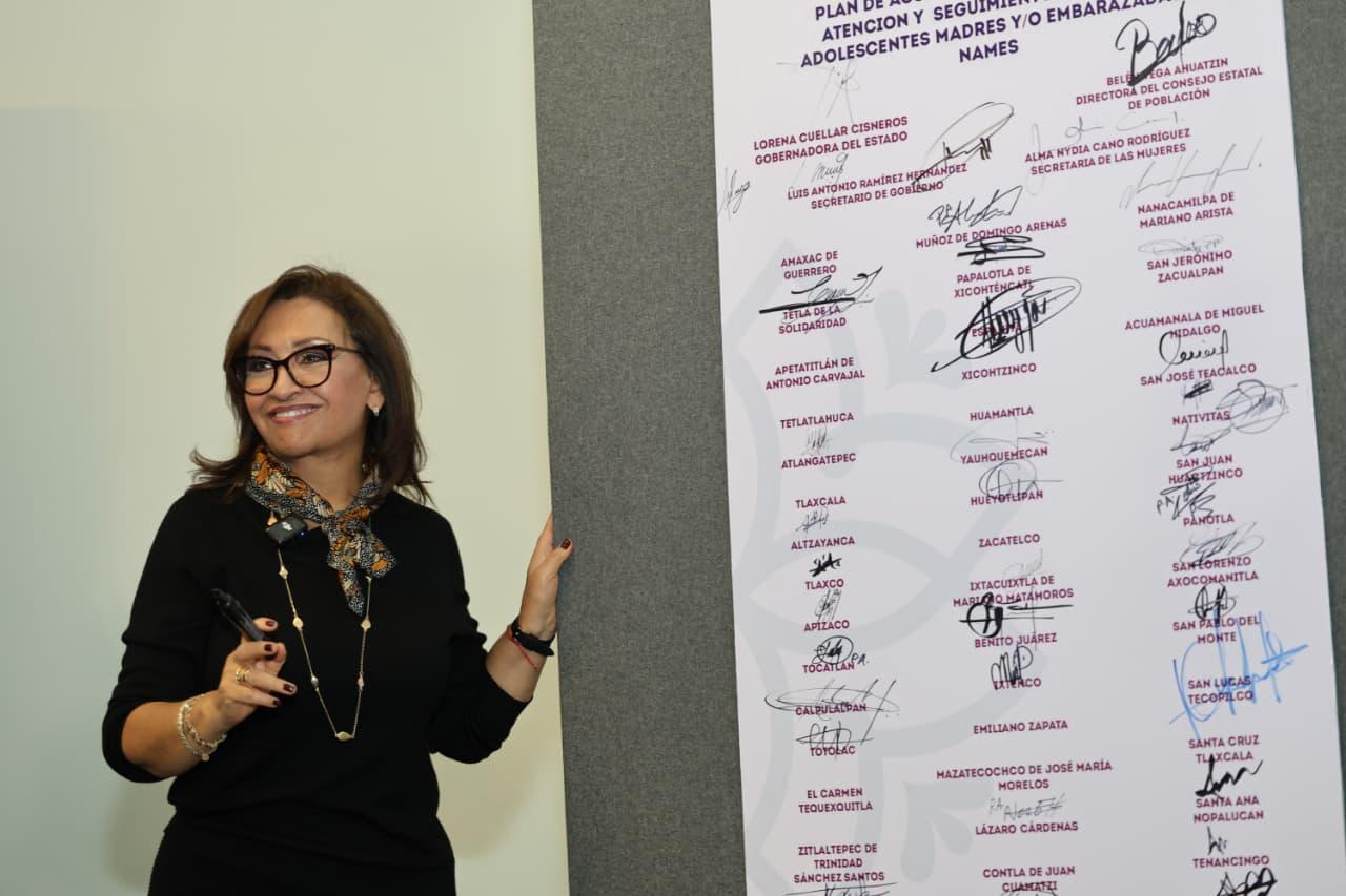 “Por eso, hoy firmamos este plan estructurado en tres ejes rectores que ofrece un acompañamiento integral en las áreas más sensibles y determinantes. Uno de estos ejes nos reúne con todos los municipios, a través de sus grupos municipales, para la prevención del embarazo en adolescentes. Hoy, todos nosotros estamos marcando un hito en Tlaxcala”, aseguró.