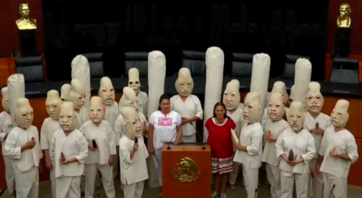 En tanto la propuesta no es votada, el performance, una representación de la ‘Ofrenda 4’ hallada en ‘La Venta’ Tabasco, presentado en el pleno del Senado de la República, acaparó reflectores.