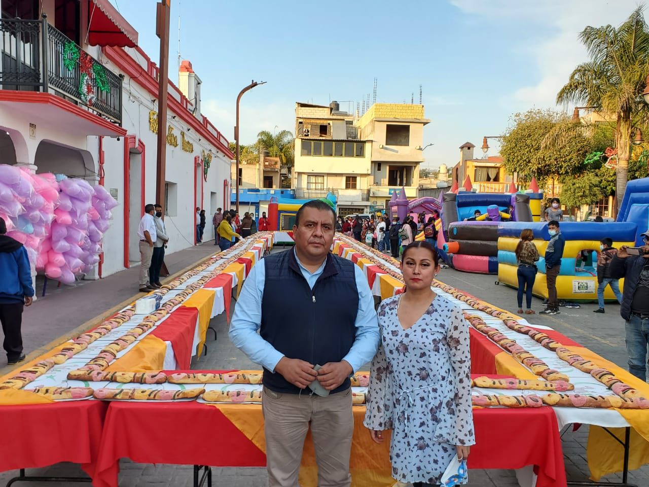 Con apego a los protocolos sanitarios y con la participación de personal de Protección Civil y Seguridad Pública, este miércoles 5 de enero se partió la Gran Rosca de Reyes, frente a la presidencia municipal de Papalotla.