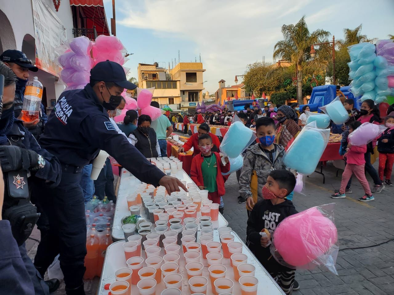 El gobierno municipal que preside Juan Octavio Rojas Cruz preparó para todos los niños juegos inflables, brincolines, juegos mecánicos, algodones de azúcar, bebidas, fotografías con los Reyes Magos y, por supuesto, la tradicional Rosca de Reyes.