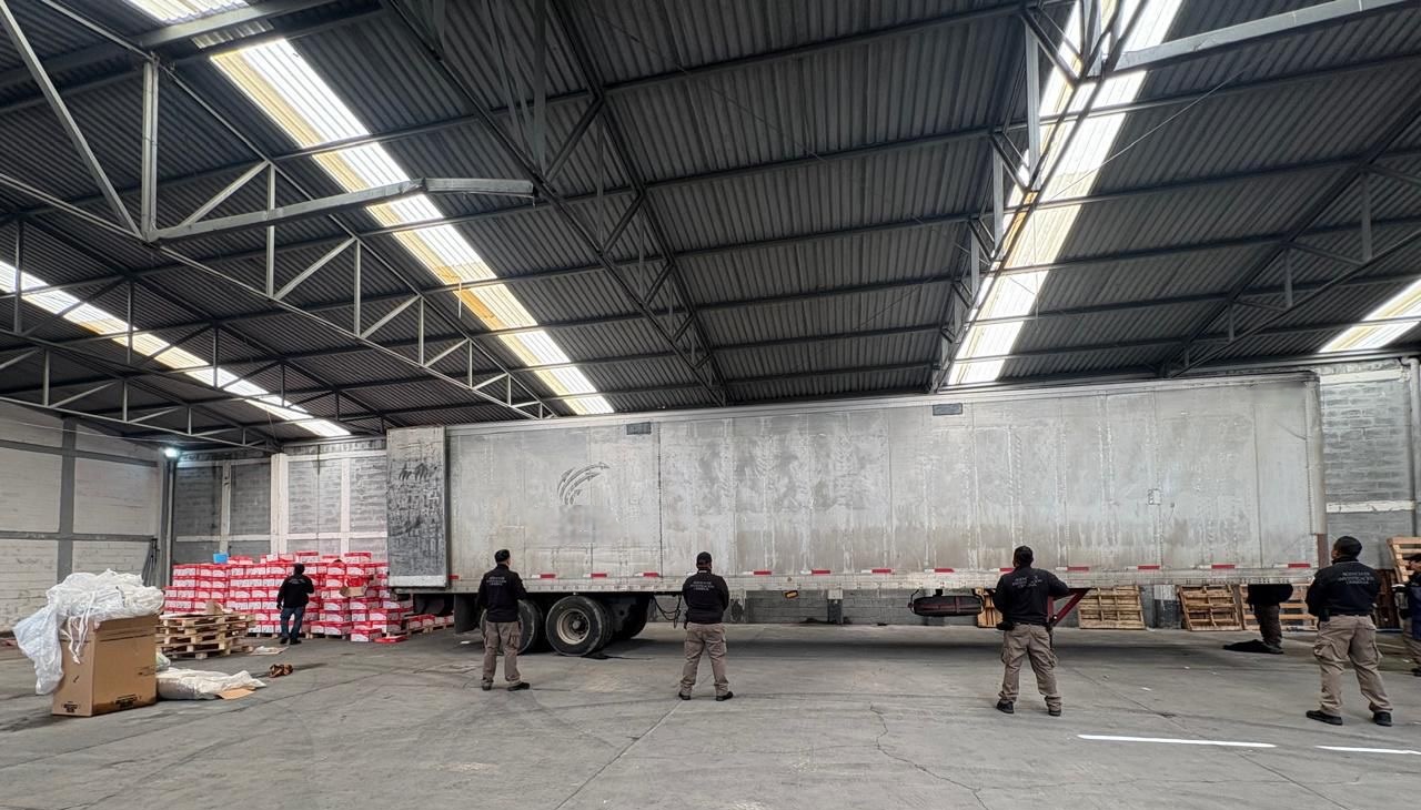 La PFM de la Agencia de Investigación Criminal (AIC) y peritos especializados en diferentes materias cumplimentaron la orden de cateo y aseguraron el inmueble, dos cajas secas, un tractocamión, una motocicleta y la mercancía contenida en una de las cajas secas, lo anterior se encuentra a disposición del Agente del Ministerio Público Federal.